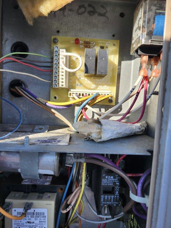 Successfully replaced the control board in the rooftop unit (RTU). Disconnected and properly labeled all original wiring prior to removal of the failed board, then installed the new control board and reconnected all terminal connections. Verified proper operation after replacement.
