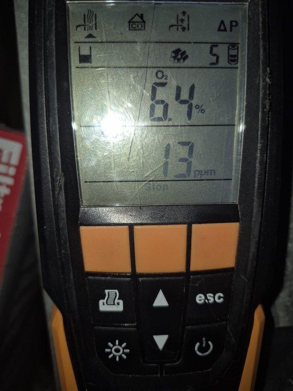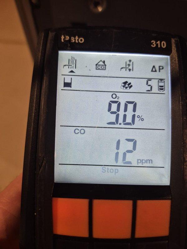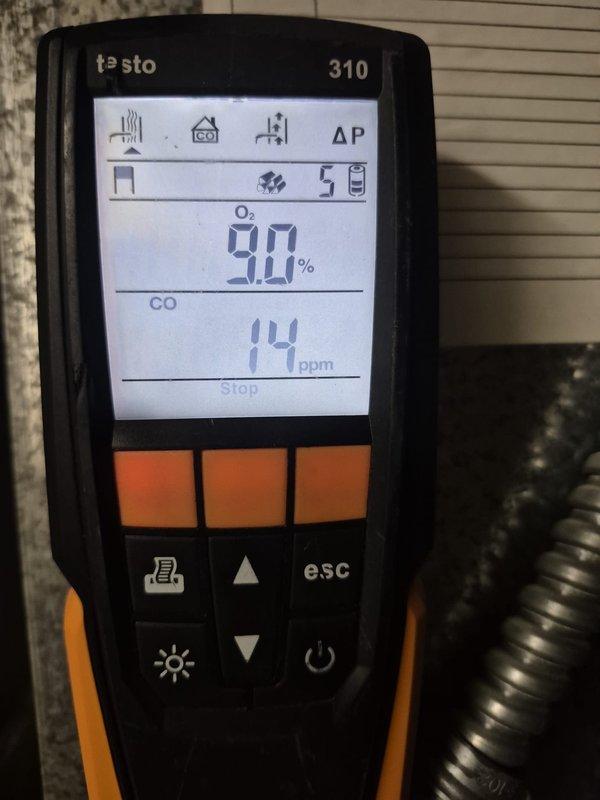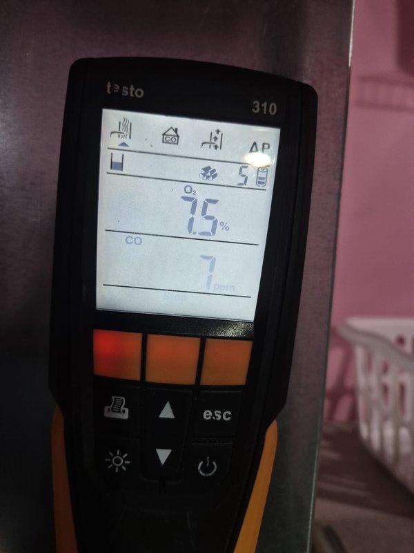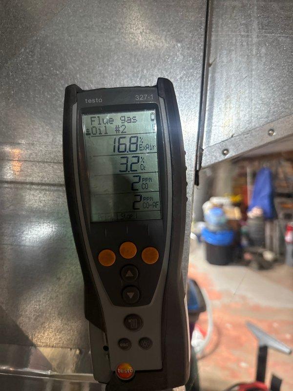 Completed fall heating maintenance service. Performed combustion analysis using Testo 310 analyzer, which showed readings of 7.5% Oâ‚‚ and 7 ppm CO, indicating proper combustion efficiency and safe carbon monoxide levels. System is operating within manufacturer specifications.