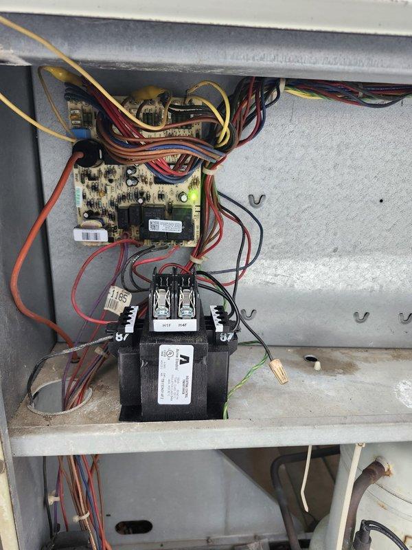 Diagnosed commercial heating system failure and identified faulty transformer as the root cause. Successfully removed damaged component and installed new replacement transformer, restoring proper power supply to control board. System now operating within normal parameters with heat function fully restored.