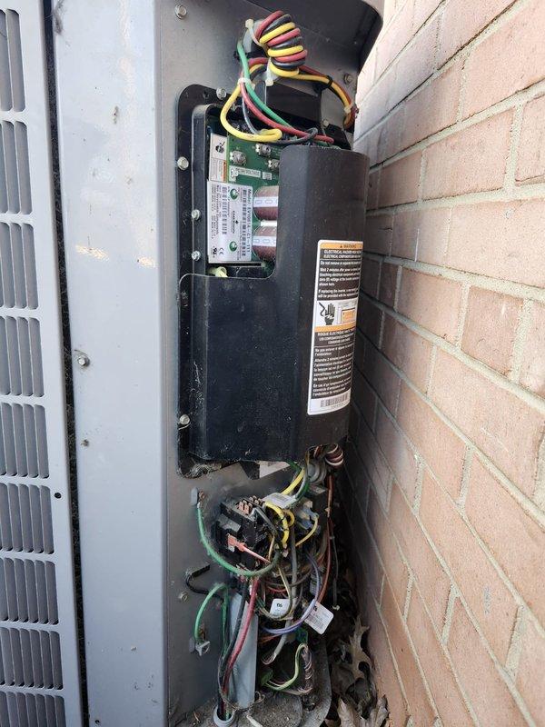 Responded to service call for non-functioning A/C and boiler. Upon inspection, found damaged control board with loose wiring connections at the outdoor condensing unit. Replaced circuit board, secured all wiring connections according to manufacturer specifications, and verified proper system operation with complete cooling cycle test.