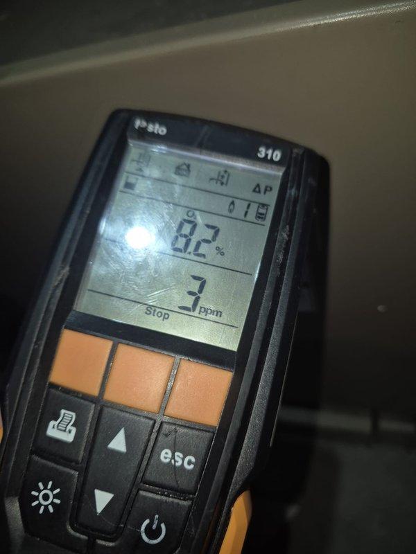 Performed scheduled heating maintenance visit. Conducted combustion efficiency testing using digital analyzer, which indicated 82% efficiency with carbon monoxide levels at 7 ppm, confirming system is operating safely within acceptable parameters.