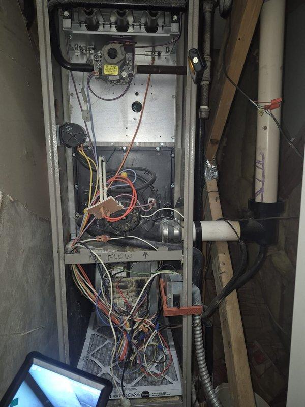 Diagnosed and serviced 20-year-old non-operational furnace. Performed inspection of control board, blower motor assembly, and gas valve components. Identified and repaired faulty wiring connections on the control module, restoring proper functionality to the upstairs heating system.